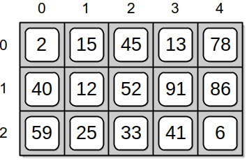 A one-dimensional array is commonly used to physically store arrays of higher dimensions. Consider a two-dimensional array divided into a table of rows and columns as illustrated in Figure 10.8.1.